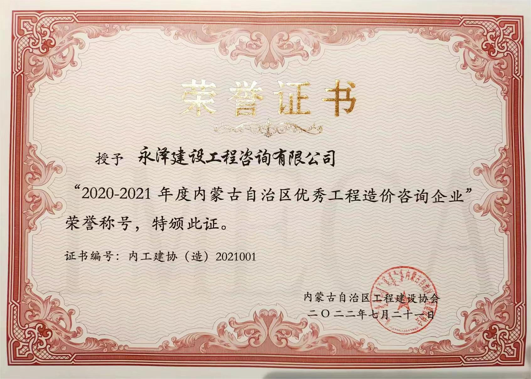2020-2021年度内蒙古自治区优秀工程造价咨询企业